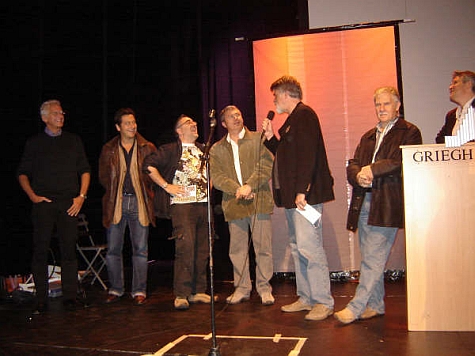 Store serieskapere på rekke og bånd. Fra venstre: Dany, Gerra, Thierry Capezzone, Achdé, Daan Jippes, Hermann og Arild Midthun. (Foto: Øyvind Braaten)