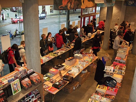 Stor interesse for serieskapersignaturer på norske tegneseriefestivaler. Dette er fra Raptus-standen til Outland. (Foto: Arild Wærness)