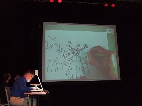 Daan Jippes og Arild Midthun hadde programpost om Jippes’ tegneseriekarriere. (Foto: Øyvind Braaten)