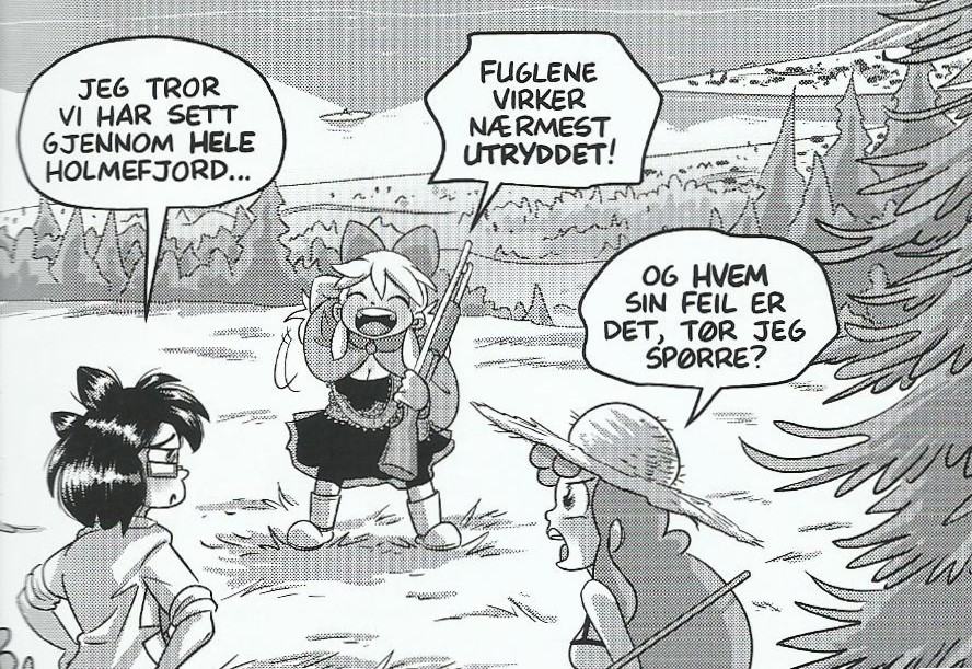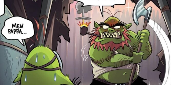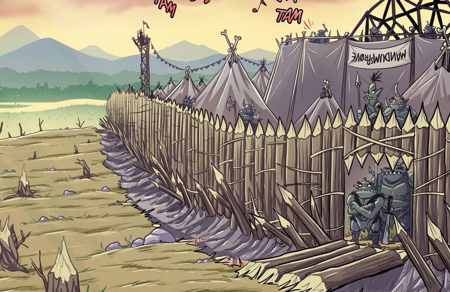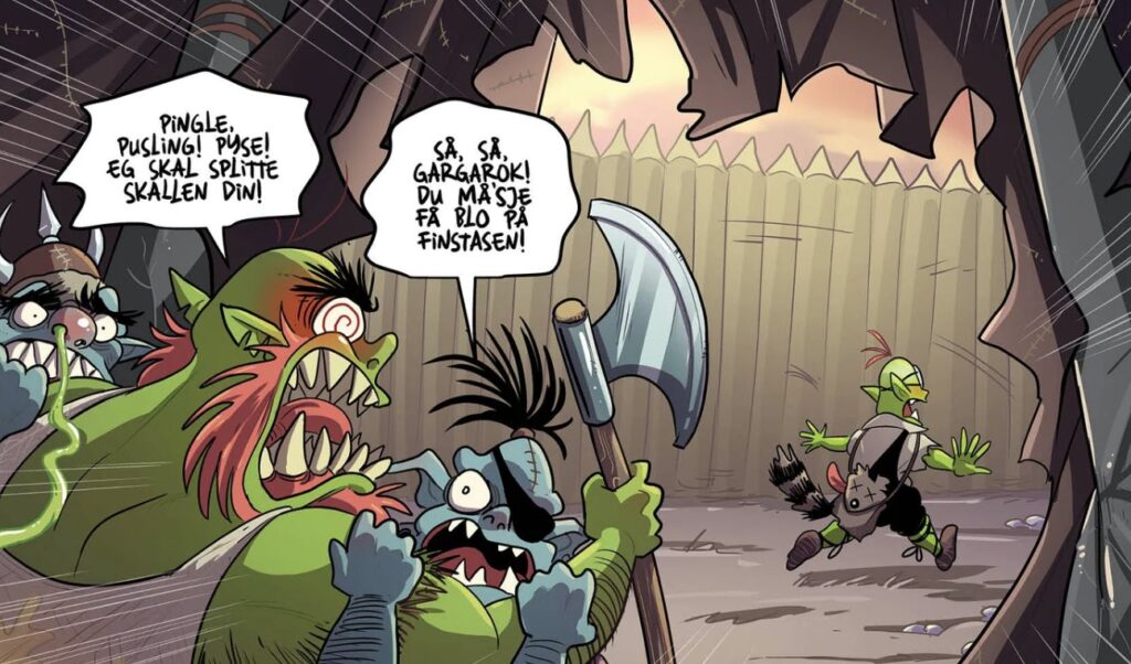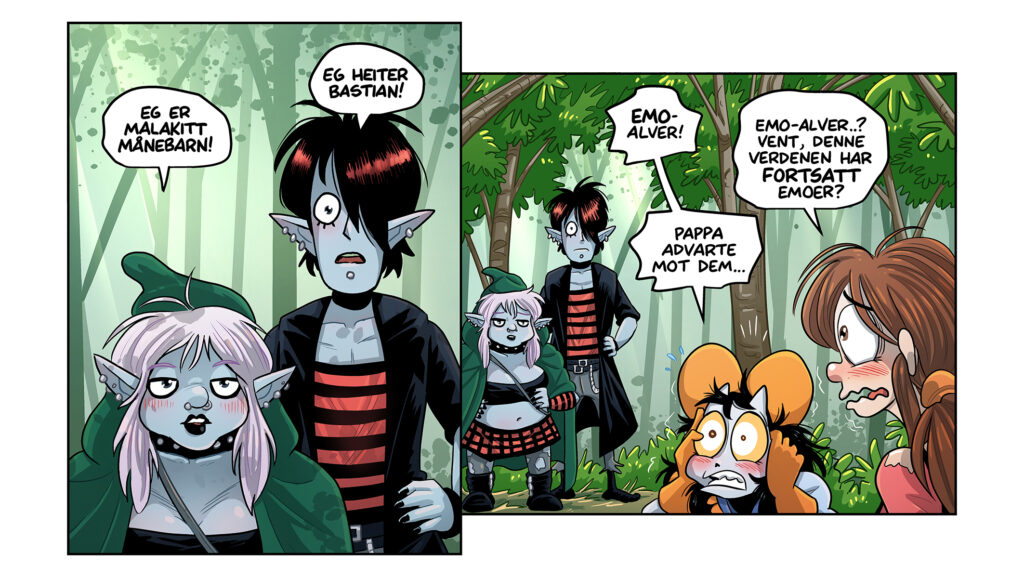 -Bok 2 er veldig morsom, kanskje den morsomste boka i serien, synes jeg iallefall selv, sier Bård videre.. -Det var utrolig gøy å jobbe med orkene, gi dem sin egen kultur basert på giftig maskulinitet. Hvordan alt faktisk fungerer, forklarer jeg ikke, men jeg tror heller ikke det trenger forklaring. «Mandumsprøven» er også et forsøk på å gjøre en såkalt «roadtrip»-historie, med mye reising. Jeg prøvde å la handlingen pause litt iblant og tegne noen stemningsfulle reisemontasjer. Går selv mye turorientering i Østmarka i Oslo, så det er mye fin natur jeg har brukt som inspirasjon til setting.