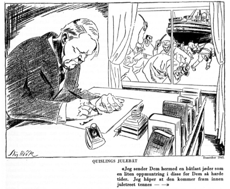 Antisemittiske tegninger av jøder i mellomkrigstiden, som bidro til hatet mot jøder, har på sin side vært det tristeste kapittelet å føre i pennen. – Karikatur kan brukes både positivt og negativt. Av enhver kunstform er det to sider. De er ofte best når de sparker oppover. Karikaturer mot jødene var eksempel på det motsatte; det er skyggesiden og viktig å få frem. Disse tegningene fikk stort gjennomslag i Tyskland på 1930-tallet. Å se på hvordan nazistene benyttet seg av pseudo-vitenskaper og rasistiske teorier i sine karikaturer av jøder, er interessant, sier Sørheim. – Samtidig var det stygge tegninger av jøder i norske humorblader på 1850-tallet, så tradisjonen for dette kom tidlig. I boka har hun også med eksempler på to norske tegnere, Ragnvald Blix og Olaf Gulbransson, som latterliggjorde nazistene med sine karikaturer. – Ragnvald Blix sine tegninger av nazisistene før og under krigen var modige, sier hun.