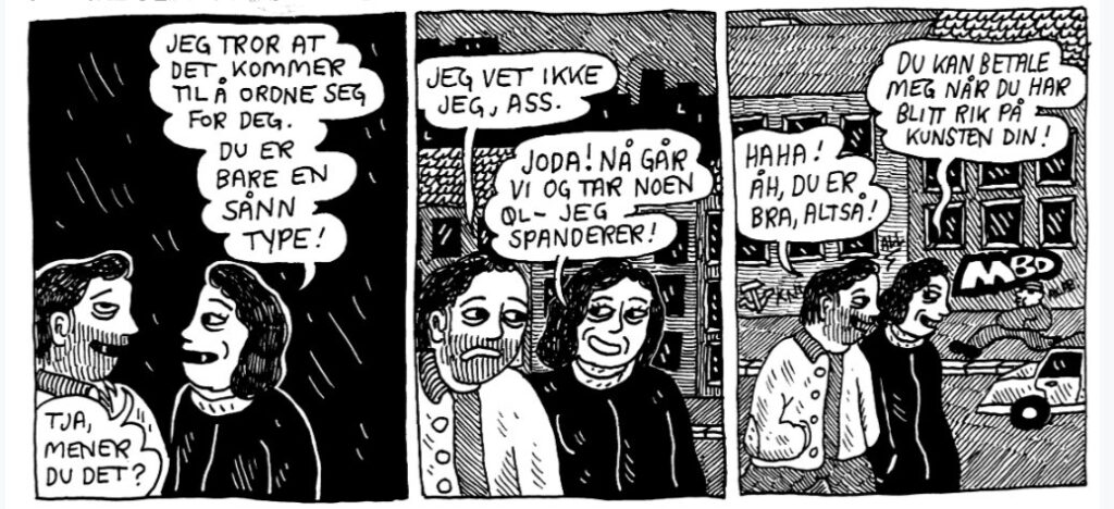 Det synes jeg var utrolig synd. Jeg har tenkt på å lage en bok til som samlet skal utgjøre en trilogi om meg selv i unge år, og da tenkte jeg til neste Forresten at jeg skulle eksperimentere med andre ting. Forresten var helt uvurderlig. Man kan lage en tegneserie på 10-20 sider uten at man har større planer. Man kan for så vidt legge det ut på internett i stedet, men det blir ikke det samme for meg.