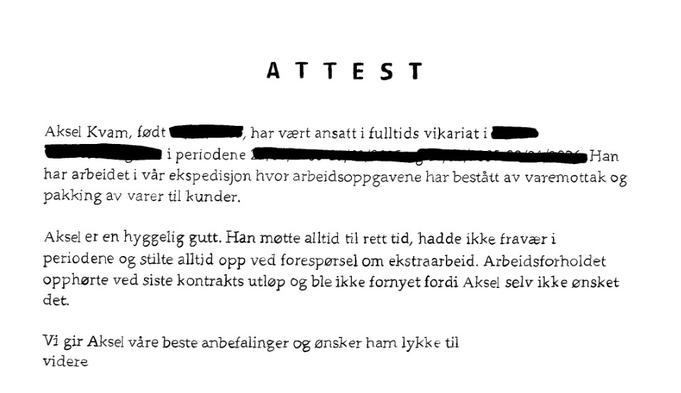 «Jobb» er delt inn i kapitler som hver gang blir markert av et attestbrev fra den jobben du nettopp er ferdig med å fortelle om. Er tekstene i alle disse brevene autentiske?