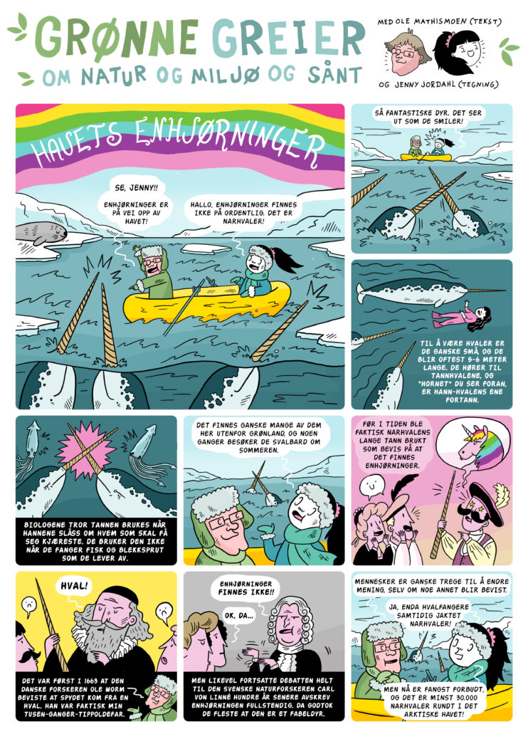 Ikke at hun kommer til å slutte med samarbeidsprosjekter nå. Sammen med Marta Breen er Jenny godt i gang med et nytt bokprosjekt. Og med Ole Mathismoen vil hun fortsette å utforske naturfenomener innenfor Grønne Greier-universet i Aftenposten Junior. Den kommende boka “Ville Greier” er en samling av utvalgte serier blandet med mye nytegnet stoff, og tema denne gangen er den ville naturen og dyrene. Forrige bok, “Hva er greia med klima?” (2019) var en helt nytegnet serie med dypdykk i klimakrisen.