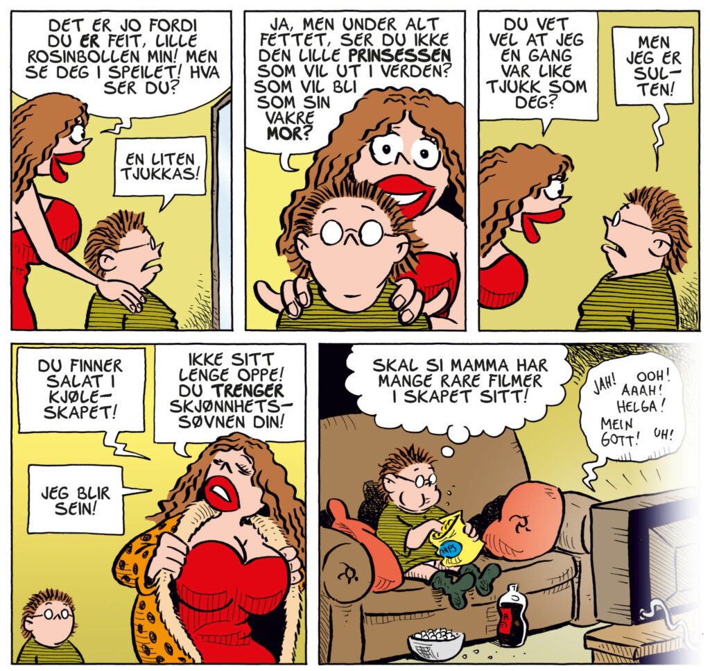 I et nokså vidåpent kollektiv er det mange åpne dører, (og noen som burde være lukket av og til) så slapstick og situasjoner er det mye av. Derfor er sekvenser der det gis rom til mer ettertanke og innsikt i de enkeltes liv og personlighet mer enn velkomne. Julespesialen «Deilig er den himmel grå» samt en lengre historie om Magda er etter min mening noe av det beste i boka.