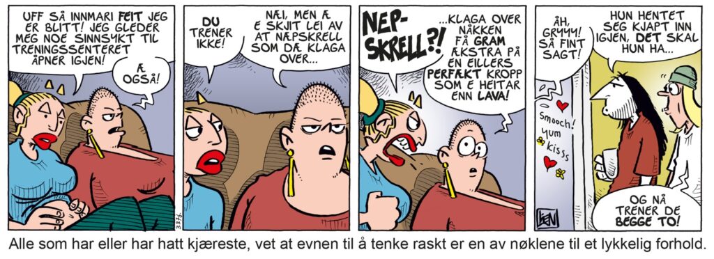 På en måte er det litt OK at det har gått litt tid, det er mye rølp og styr i en slik bok, så en liten pustepause er bare av det gode. Det går i et voldsomt kjør det meste av tiden, serien er jo basert på øyeblikkshumor, med situasjoner og replikker som fyker veggimellom. Lien kommenterer en god del av stripene, og påpeker selv at en del situasjoner og historier ikke fungerer optimalt (derav ‘lavmål’ i tittelen). Men det er flust av høydere, og de veier mer enn nok opp.