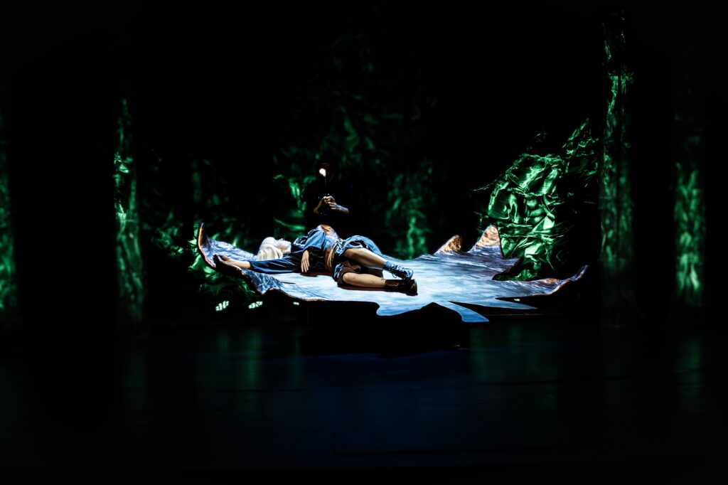 Ei sceneforestilling gir rom for å bruke andre element for å formidle historia. Det er fleire element i historia som er vanskeleg å få vist fysisk på scena, så då blir det brukt andre verkemiddel, som musikk og skuggeteater.