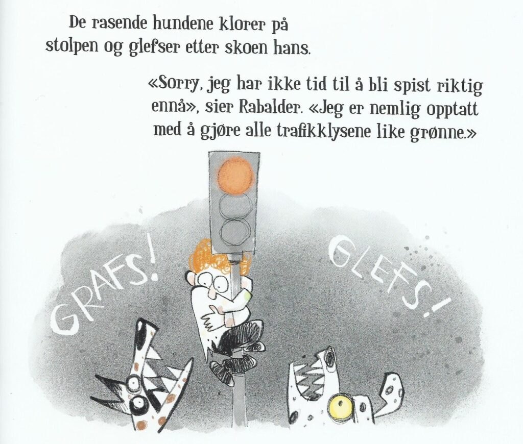 Ja, det er det, og det er ein honnør til Jens K. Styve sine evner som grafisk forteljar. Viss du liker Dunce ikkje berre for teksten, men like mykje for streken, vil du også like Rabalder, som ligg veldig nær opp til Jens’ signaturserie av utsjånad – I alle fall etter han la om stilen litt for få år sidan, og begynte å gi figurane rundare naser og større auge.