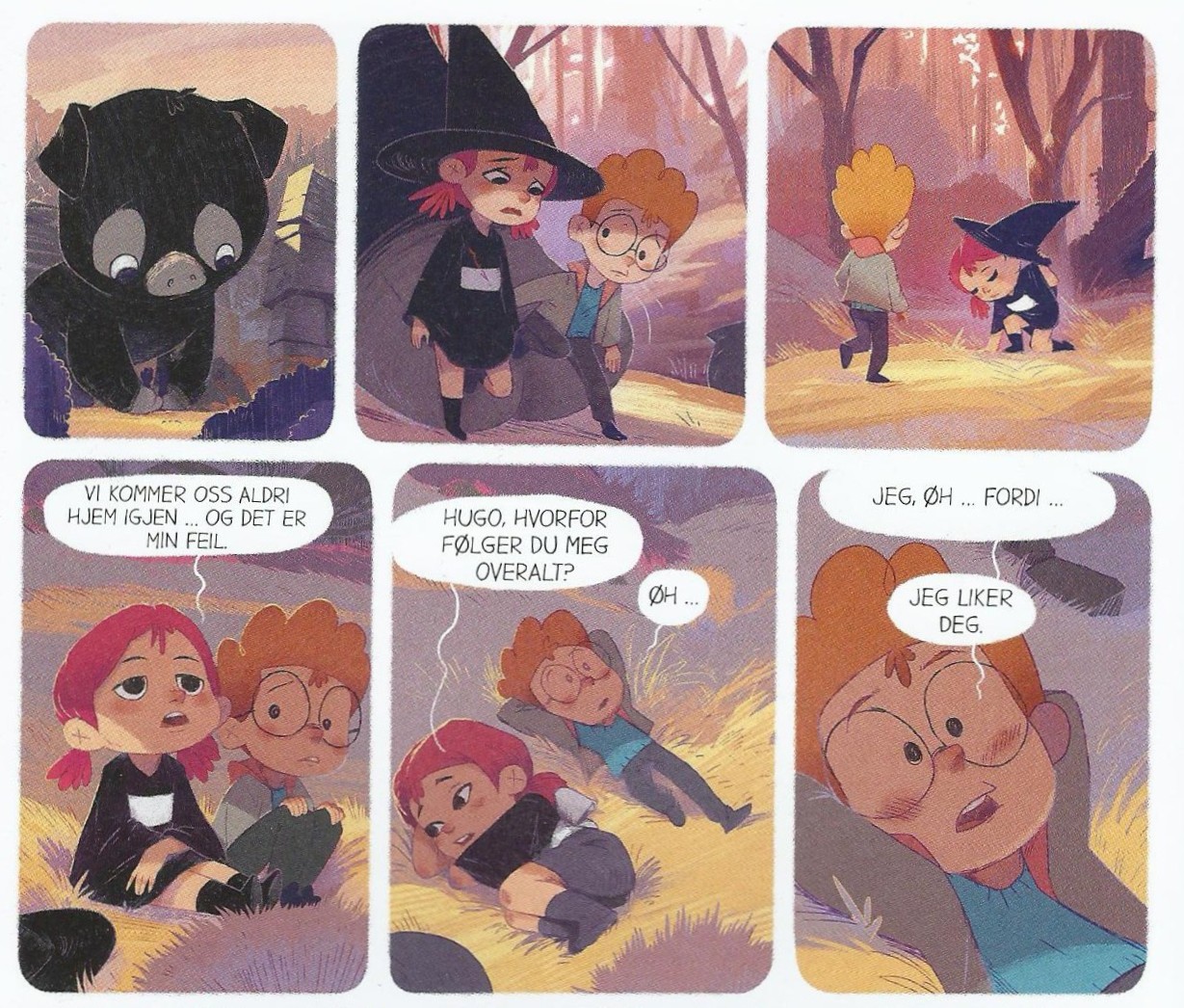 Men humoren er altså viktig, og til å være en barneserie er de fleste vitsene ikke for bløte. Saga sjarmerende arroganse er kilde til et overskudd av spissete kommentarer. Jeg kunne nesten påstått at dialogen er det beste ved serien, men det utmerker seg like mye med estetisk imponerende grafiske valg (Hinder tegner og Pélissier fargelegger, så disse kan de begge ta æren for). Motivene er todelte; en blanding av landsbyens eventyrlige gotiske arkitektur og de omkringliggende landskapene, som alltid er vakre og stemningsfulle, men også alltid dunkle og fulle av monstre og spøkelser. I tillegg til at de spennende scenene, når nevnte monstre og spøkelser tar en mer aktiv rolle i handlingen, har ganske spektakulære presentasjoner.