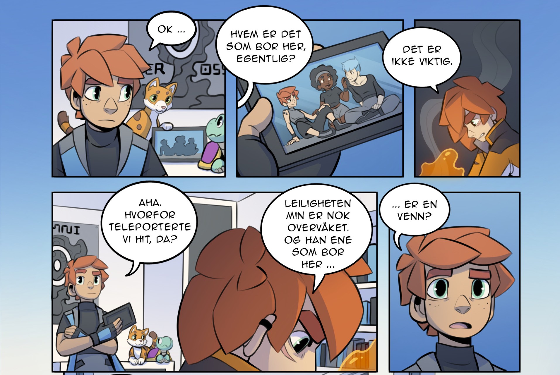 Dahlstrøm tar heller ingen snarveier med tegningene, med sin relativt originale og estetisk tiltalende stil. Jeg vil til og med si den har blitt litt bedre siden bok én, hvor jeg særlig i begynnelsen fikk litt følelsen av at figurene var trykket inn i bøkene som klistremerker. Kanskje på grunn av de tykke strekene, eller fordi fargene ikke passet helt sammen. I denne boken føles de langt mer naturlige i bilderammene, og det virker som Dahlstrøm har jobbet med strek, farger og skygge.