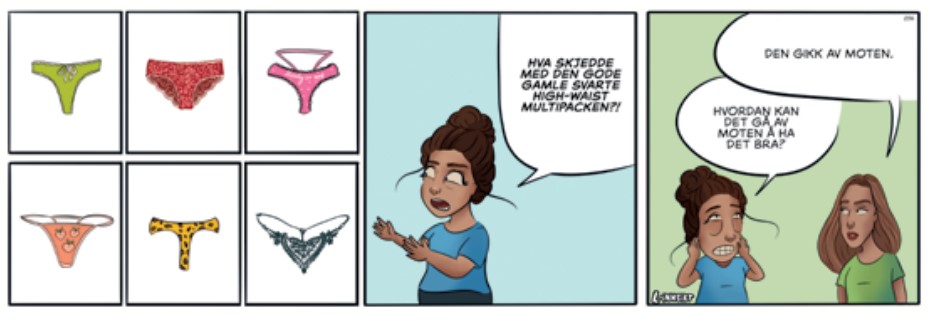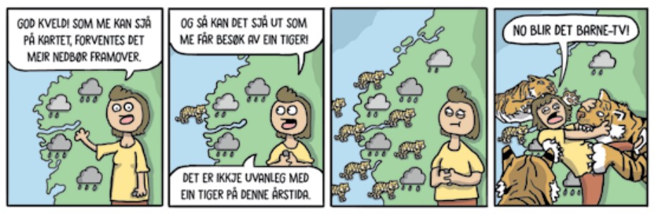 Nå er det ikke sammenlikning med bladet Lunch som er mest nærliggende, men med før nevnte Rutetid. Jeg ønsker ikke å forringe verken Storefri eller Rutetid, som begge to er serier jeg humrer av, men de er ikke serier som noe blad brister eller bærer med. Den viktigste grunnen til at jeg ønsker å lese disse bladene er den rene mengden med biserier, og det vinduet som de gir til hva som rører seg innen, unnskyld ordvalget, b-sjiktet av norsk tegneseriehumor. Heller et ujevnt, men stort og variert utvalg, enn halve bladet fullt av repriser på hovedserien.
