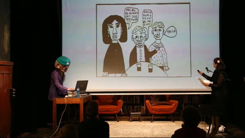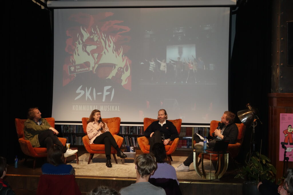 På Høylytt Tegneseriesalong gjengir Amina Baker ein samtale ho nok har hatt fleire gonger, om kvifor ho «snakker bra norsk til å vere X». Lengst f.v.: Susie Tunes