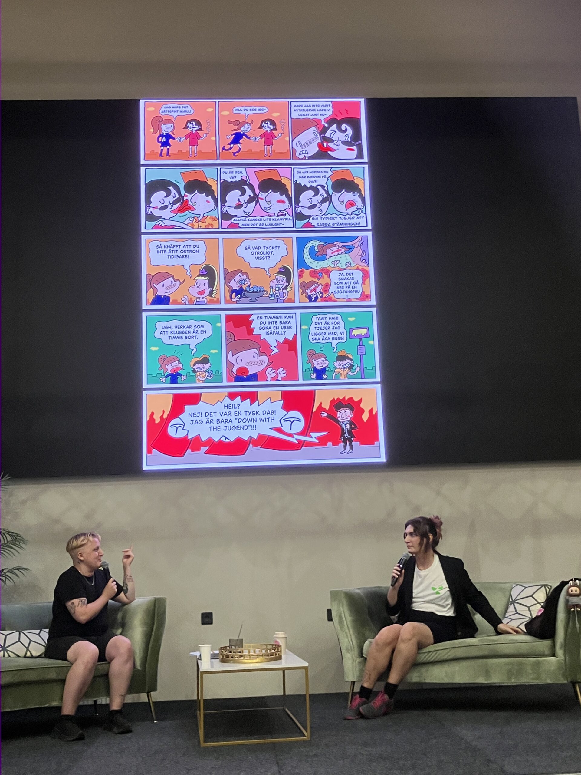 I år er Olivia Skoglund aktuell med “Uppdrag underliv”. I den anledning var hun på tegneseriefestivalen i Ystad sist september. Der ble hun intervjuet av Mattis Telin. Tegneseriene til Skoglund er morsomme og personlige, og det var også programposten preget av. De to vennene hadde god kjemi sammen, og Olivia Skoglund var ikke redd for å by på seg selv.